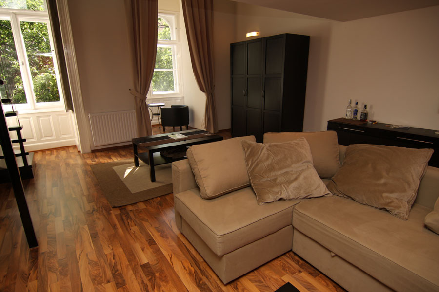 We offer a 56 square meter apartment in district VII, in Rottenbiller utca. It is situated in a modern building on the second floor, the windows are facing to the beautiful garden. It consist of a living room, a bedroom, kitchen with dinnig area, bathroom, toilet. Common cost is 40.000Ft/month(heating included). Internet, 24 hours reception. The apartment is equipped with a newly installed circo heating system. There is garage in the house which can be rented for 20.000Ft/month. The apartment is very close to Keleti pályaudvar, and to the centre of Budapest.